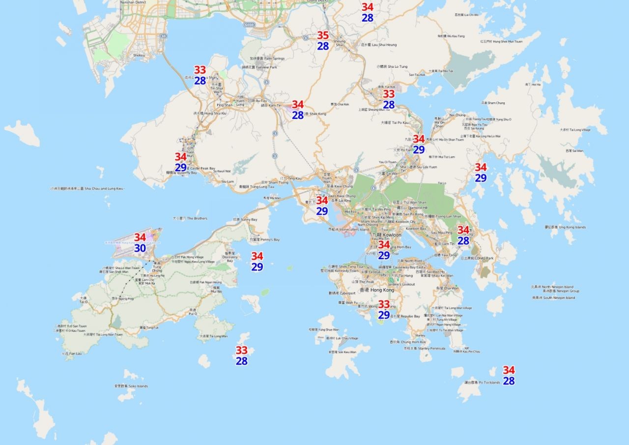 Diperkirakan hari ini wilayah Hong Kong kadang-kadang terdapat hujan gerimis dan beberapa area akan terdapat badai petir. Besok suhu tetap panas sekitar 27°C - 32°C kadang-kadang cerah, hujan gerimis dan terdapat badai petir di beberapa area pada sore sampai malam hari.