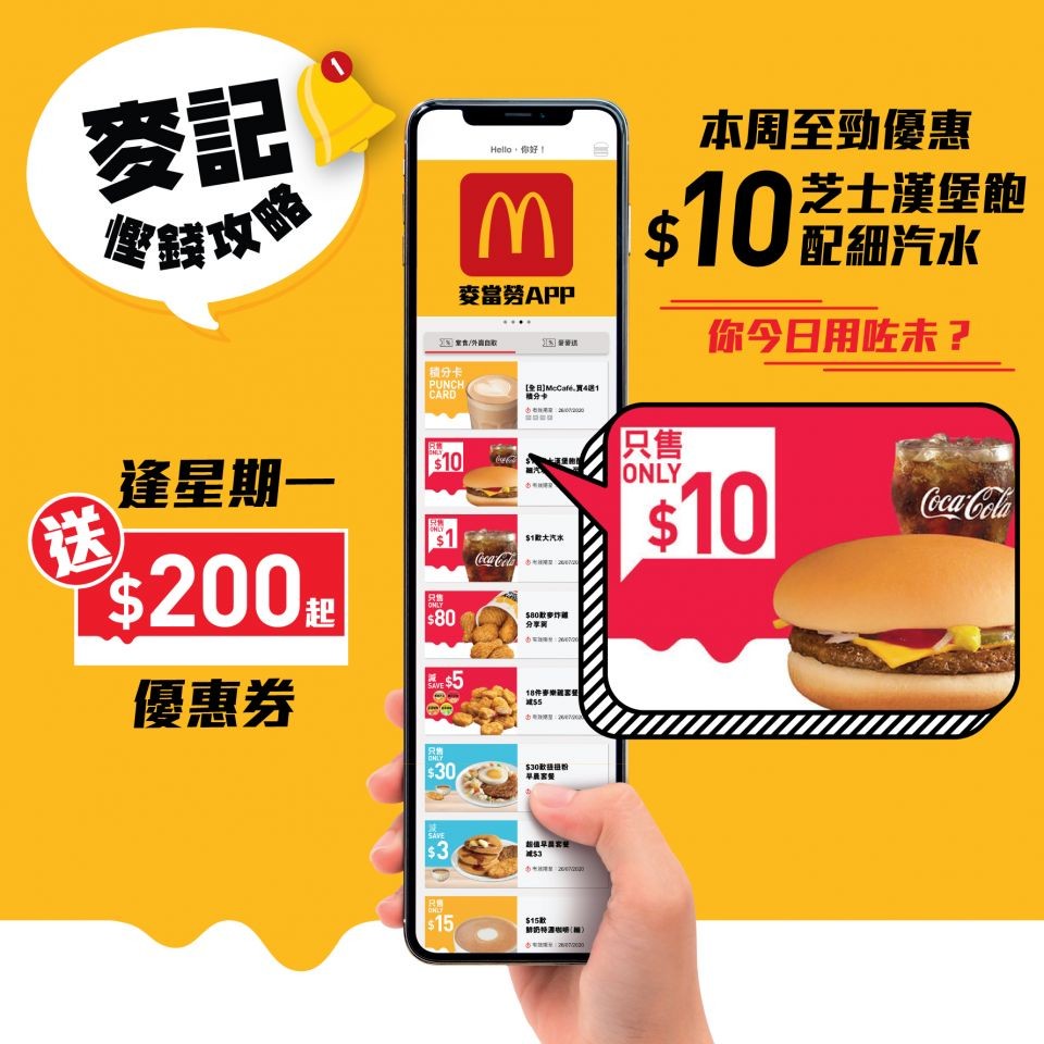 Mulai hari in, setiap hari Senin pemesanan makanan melalui McDonald's Hong Kong (麥當勞) App akan mendapatkan promo yang dengan total nilai sebanyak HK$200