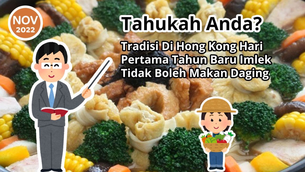 Di Hong Kong banyak sekali tradisi terkait dengan Tahun Baru Imlek / Chinese New Year 農曆新年 (nung4 lik6 san1 nin4). Salah satunya adalah di hari pertama Tahun Baru Imlek tidak boleh makan daging.